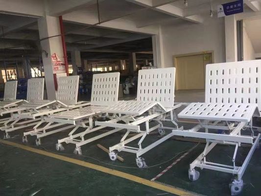 سرير المستشفى اليدوي البلاستيكي بالرش الصلب مع اثنين من السواعد للمستشفى الأبيض